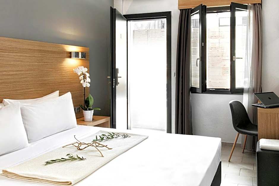 Modernly decorated and spacious room with a balcony overlooking the main pedestrian street.